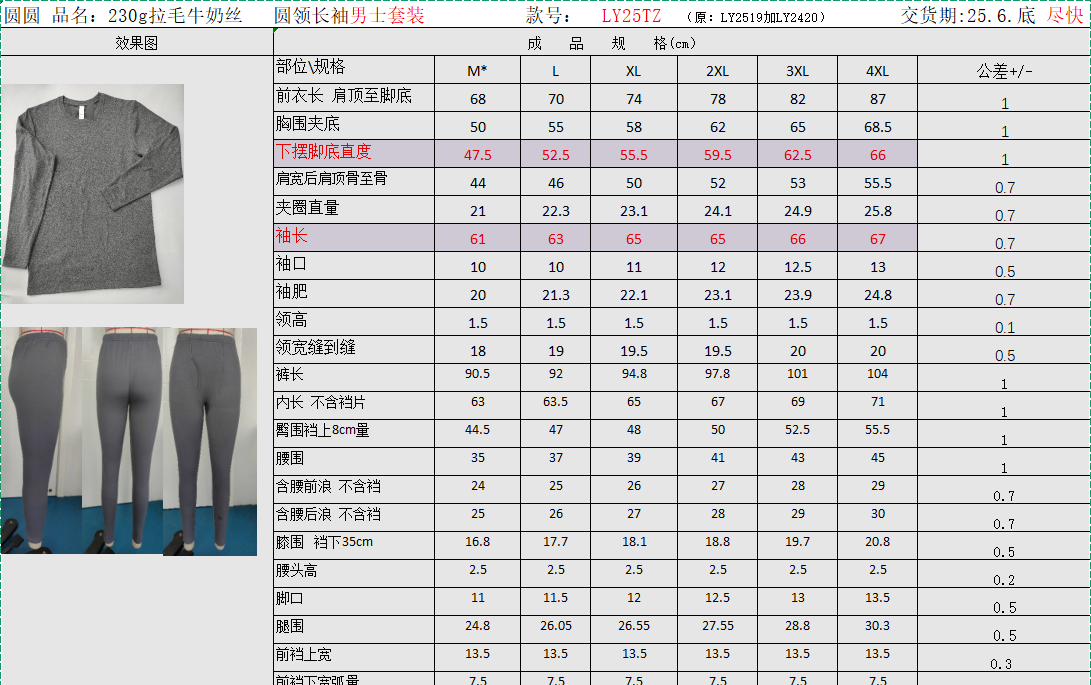 名称:LY25TZ 男士保暖套装