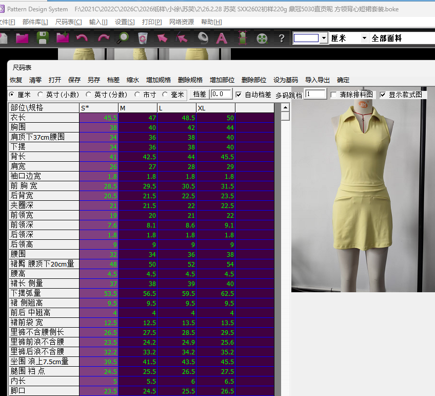 名称:SXX2602方领背心短裙套装